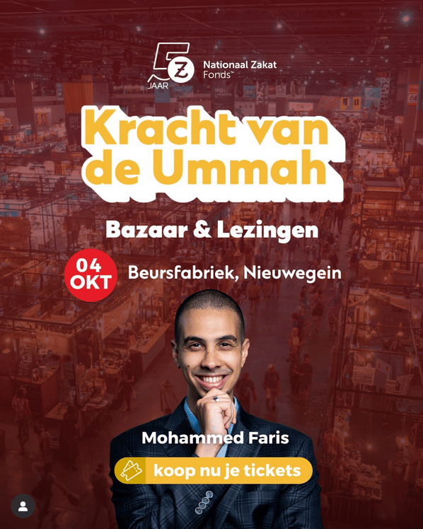 | 🎟️ Upcoming Events | Mohammed Faris is heading to the Netherlands 🇳🇱 in a couple of days, insha'Allah: |  | On Saturday 11 Rabi'-II (4 October), he will be speaking on the theme "The Power of the Ummah" at the Ummah Bazar in Nieuwegein. |