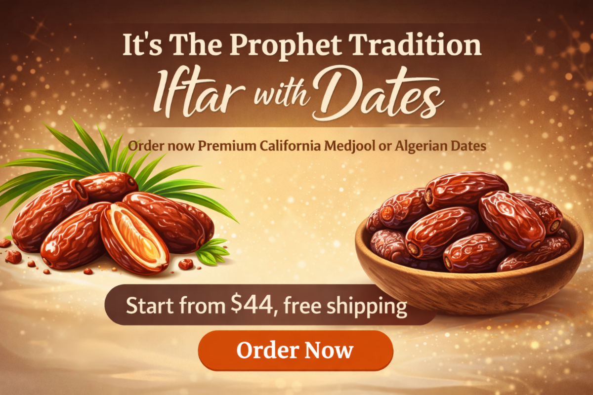 Ramadan is here! Break your fast the Sunnah way with Premium California Medjool and Algerian dates. Naturally sweet, rich, and full of blessings for your iftar table. Start from $44 with free shipping. Order now and share the goodness with your family.